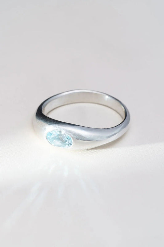 Aquamarine Mini Dew Drop Ring Silver
