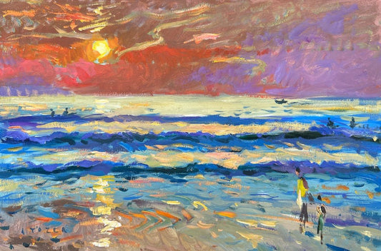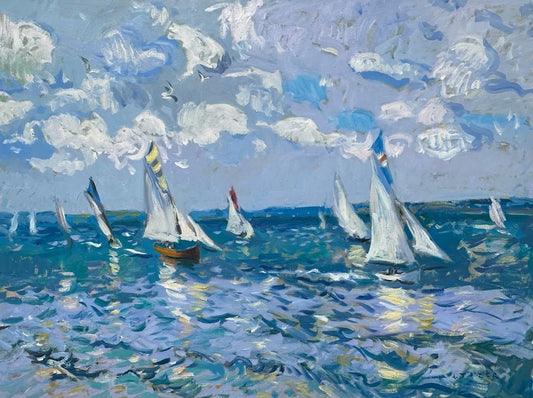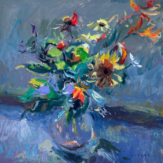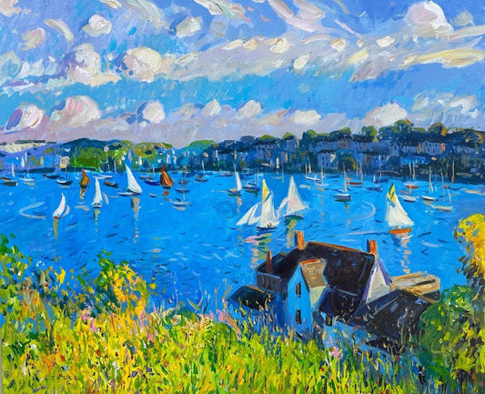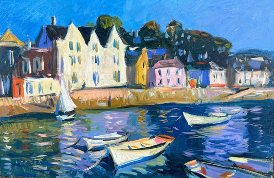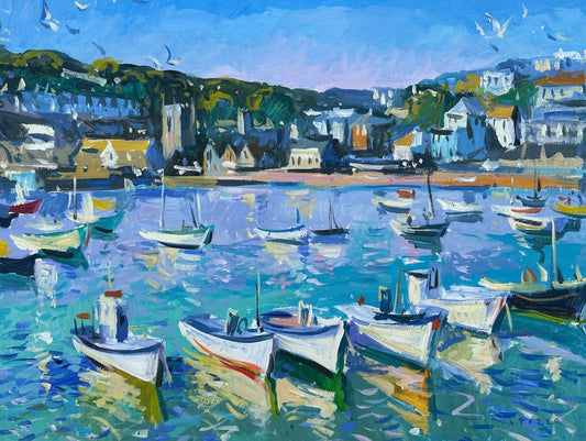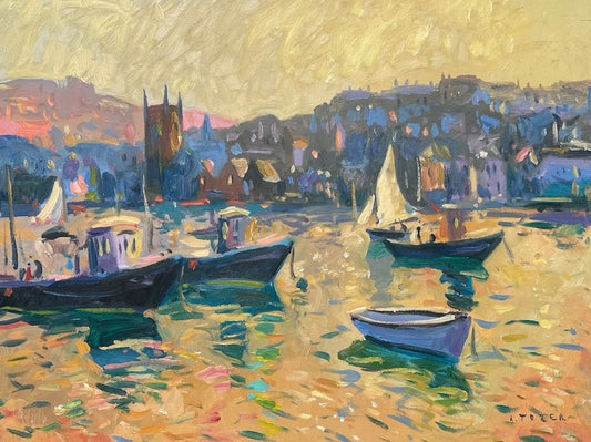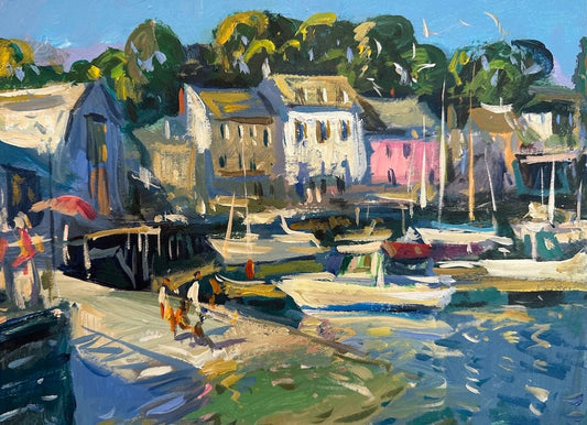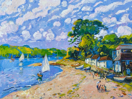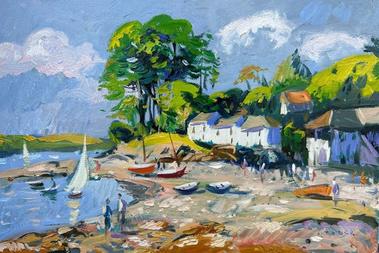 Born in Cornwall in 1974, Andrew Tozer’s connection to the landscape began early, growing up in a farming family. Working both en plein air and in the studio, he’s known for capturing light and atmosphere with a painterly immediacy rooted in the legacy of Impressionism. His subjects — from quiet harbours to family scenes — are chosen for their emotional pull, rendered through expressive brushwork and careful layering that brings depth, movement, and clarity to each piece.