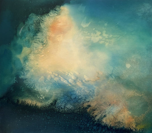 "I focus on coastal skies and shifting light from my studio overlooking Falmouth harbour. The drama, colour, and emotion of light across land, sea, and sky inspire the layers and moods in my work." Nicola Mosley