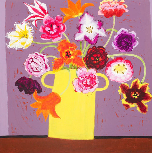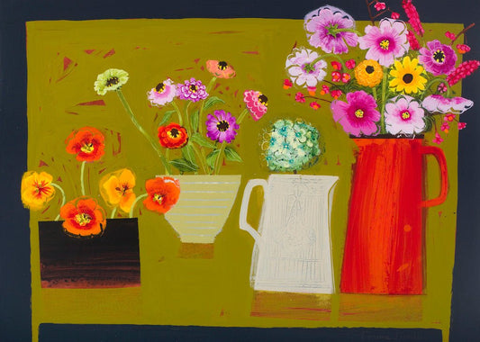 Still life compositions are brought to life through rich colour and stylised form, celebrating the beauty of everyday objects. With a decorative and expressive approach, her paintings radiate energy, simplicity and a sense of joy in the ordinary.