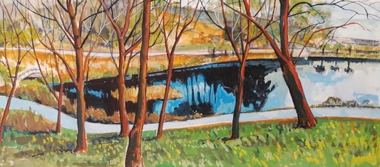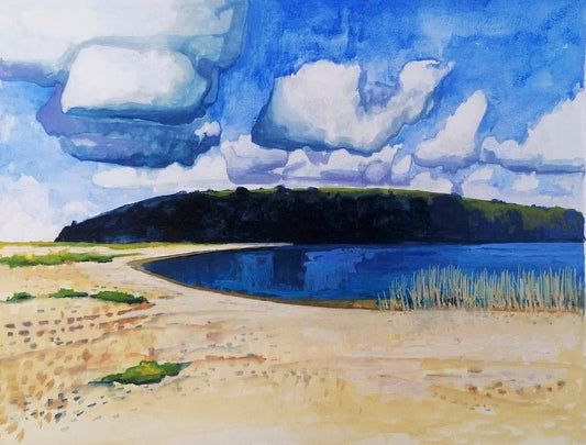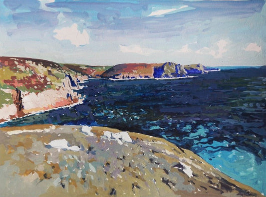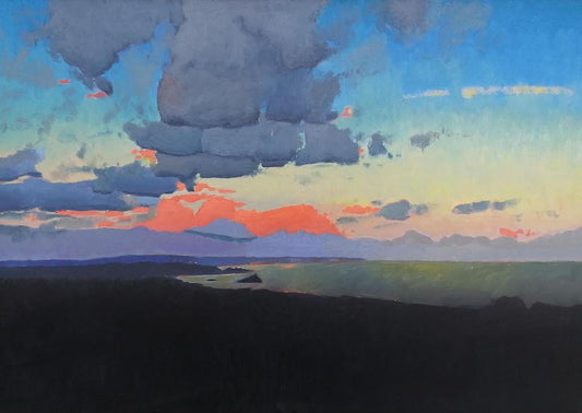 Based in Cornwall, Hugo’s paintings explore scale, stillness and the emotional presence of place. A Brighton University graduate with a background in illustration and pastry, his work reflects a balance of creative discipline and intuitive expression.