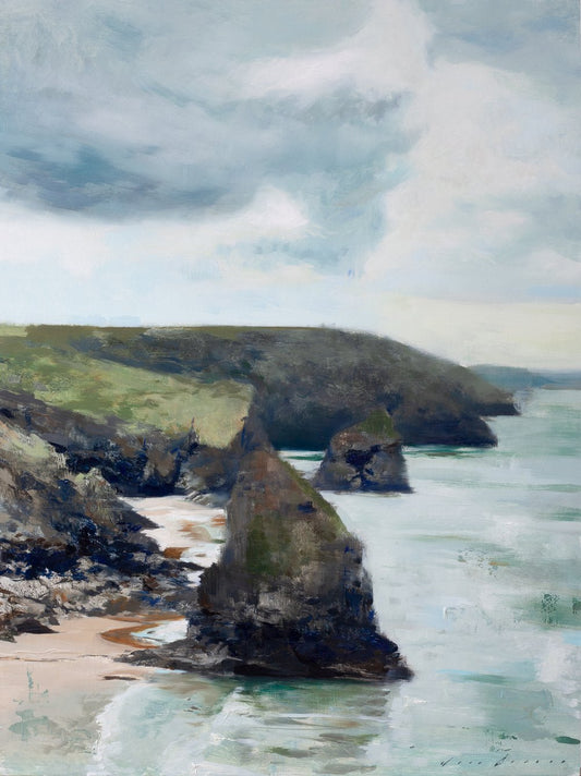 He studied Fine Art at Falmouth School of Art, and additionally classical realism at Florence Academy Art. He now paints from his studio by the water, teaches at the renowned Newlyn School of Art and regularly explores Cornwall with his wife and three daughters.