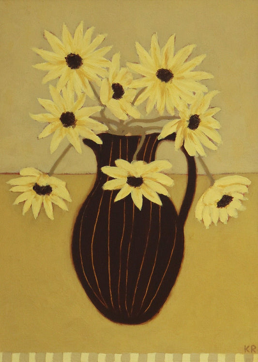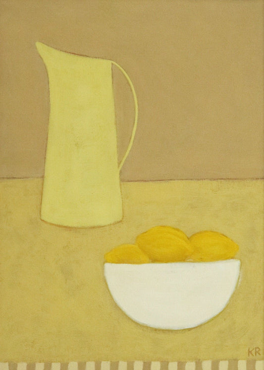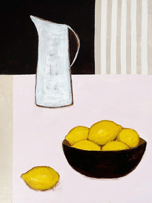 Katie Roberts is a Cornwall-based artist known for her vibrant still life paintings that celebrate colour and form. Inspired by her surroundings and travels, she creates playful, Mediterranean-inspired scenes. With a background in Graphic Communication and design experience in London, she now paints from her studio near Falmouth, drawing from the coastal light and landscape.