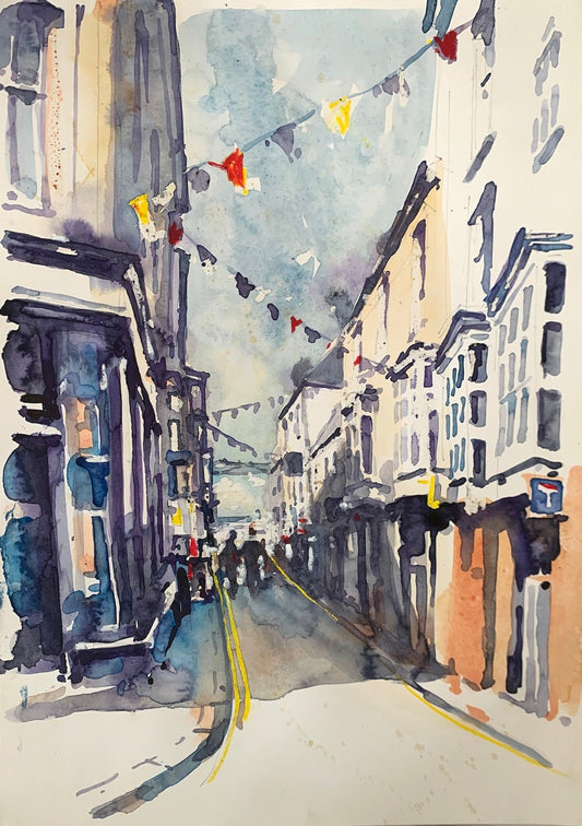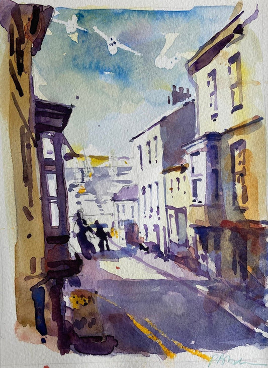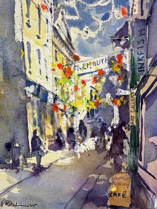 Working directly from life, Peter captures the movement and atmosphere of place through plein air painting. Watercolour, pencil, and oil combine in lively, immediate marks. His practice has spanned cities from Paris to Cairo, with international exhibitions and recognition including the Trinity Buoy Wharf Drawing Prize.